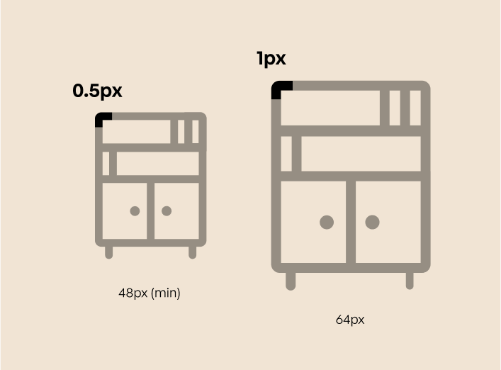 - 48px icons use a 0.5px radius