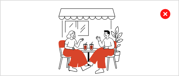 This section outlines common mistakes to avoid when working with illustrations. Following these guidelines ensures that every illustration aligns with our design principles and contributes to a cohesive, polished brand experience.