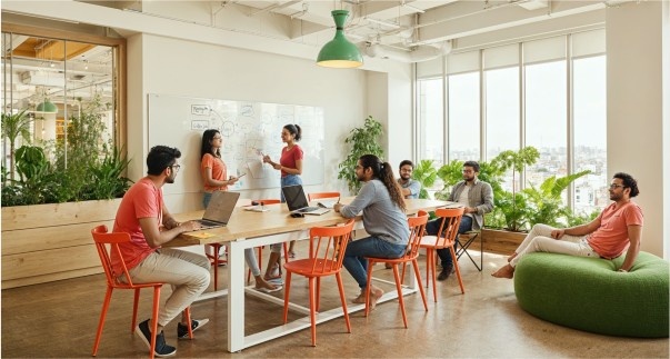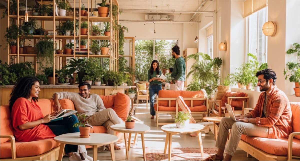 Truliv spaces are designed to inspire focus and collaboration. Our coworking areas capture individuals engaged in deep work or dynamic group discussions.