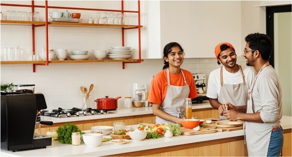Our common areas are hubs of activity and warmth, where residents connect, work, cook and unwind together fostering bonding over food and conversations.