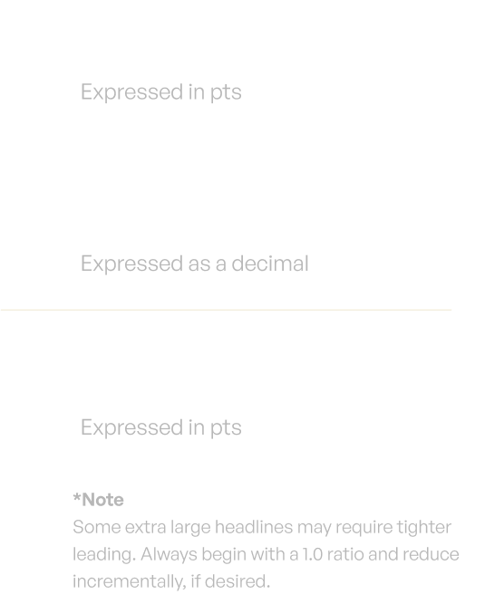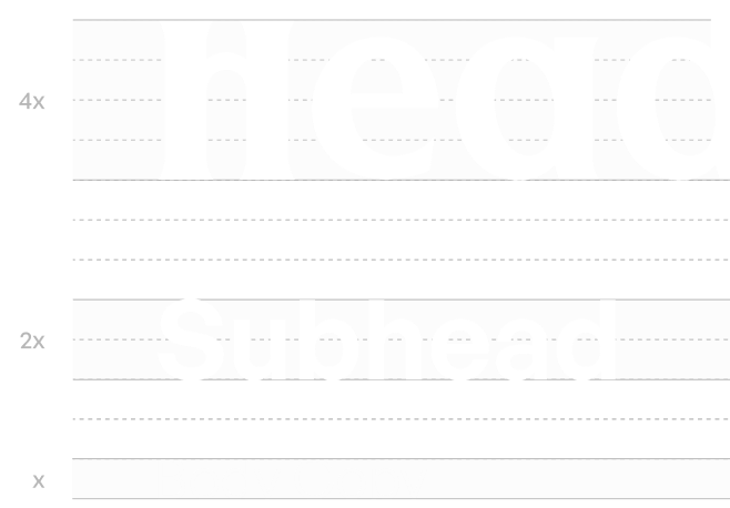 The minimum space following any headline should be 75% of the headline’s cap height. The minimum space following a subhead or body paragraph is equal to 100% of the subhead or body copy’s cap height.