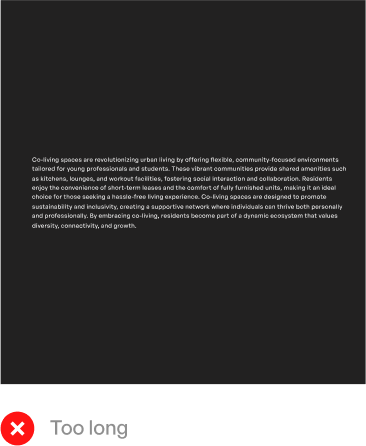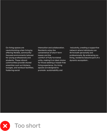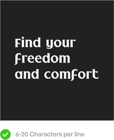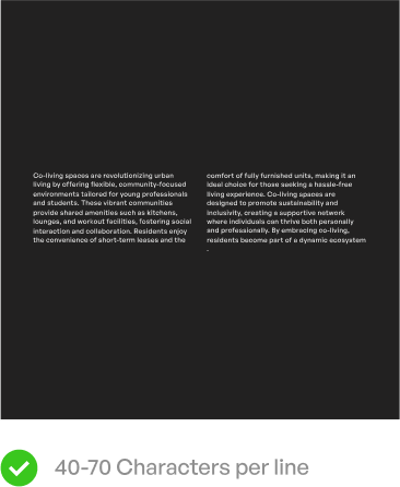 To ensure readability, manage line length effectively. Headlines should contain 6 to 18 characters per line, while paragraphs should fall within a 40 to 70 character range.