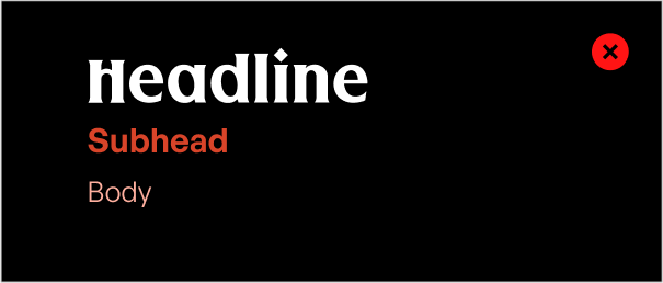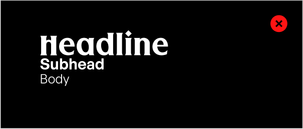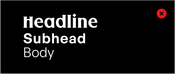 In our pursuit of brand consistency and visual integrity, it's crucial to understand what not to do with typography. This "Type Don'ts" section serves as a critical companion to our typographic guidelines. It highlights common pitfalls to avoid and provides clear directives to ensure that our brand's typographic elements are always used effectively and appropriately.