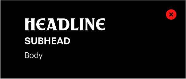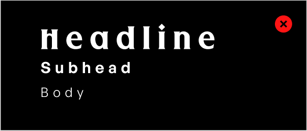 Don’t set headlines in all lowercase or oversized sizes.